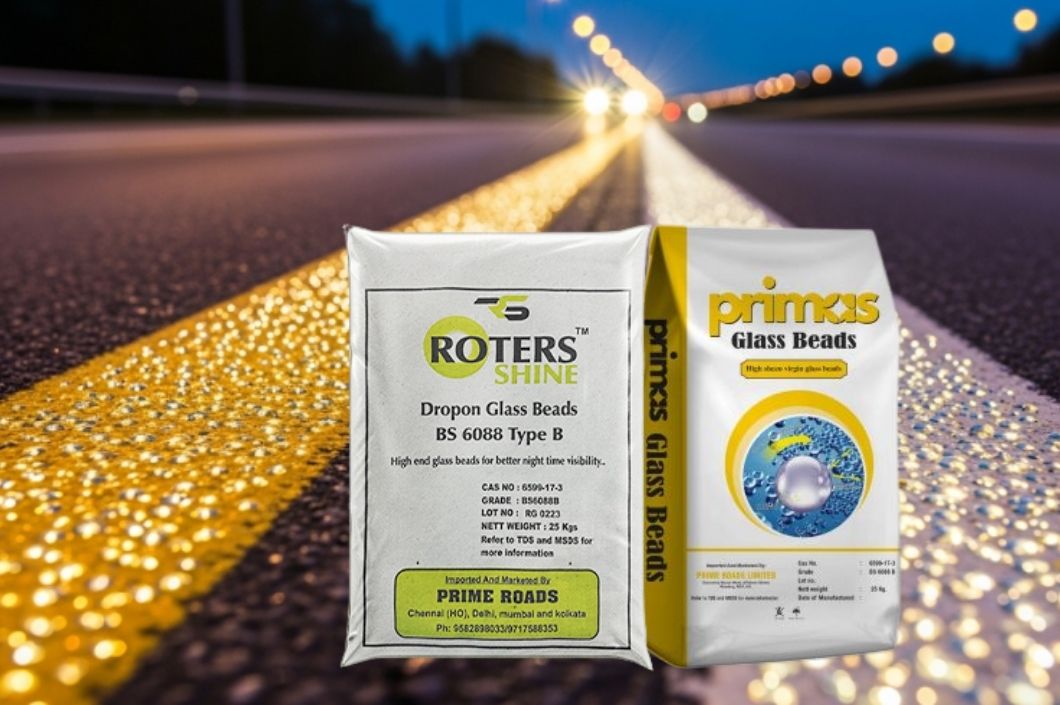As a leading thermoplastic road paints manufacturer and supplier, Prime Roads offers high-performance drop-on glass beads engineered for Indian traffic and climate conditions.